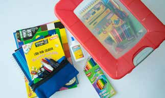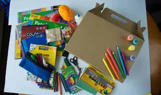 Set de utiles escolares, manualidades, artes, didácticos y equipos tecnológicos son organizados según sus requerimientos en bolsas, morrales, cajas y otros contenedores de acuerdo a base de datos, para efectuar la distribución en escuelas, colegios, jardines infantiles y oficinas del área metropolitana y regionales.
