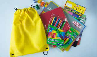 Preparación de todos los elementos escolares en sobres de papel, personalizados y adaptados a la medida necesaria.